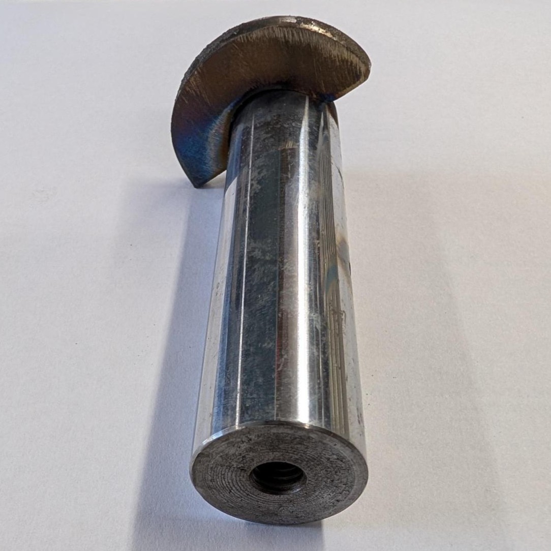 This pin is locally manufactured from 1″ induction hardened chrome, with a threaded and tapped, recessed 6mm grease zerk, grease channel, and accepts a 5/16 bolt in the other end.